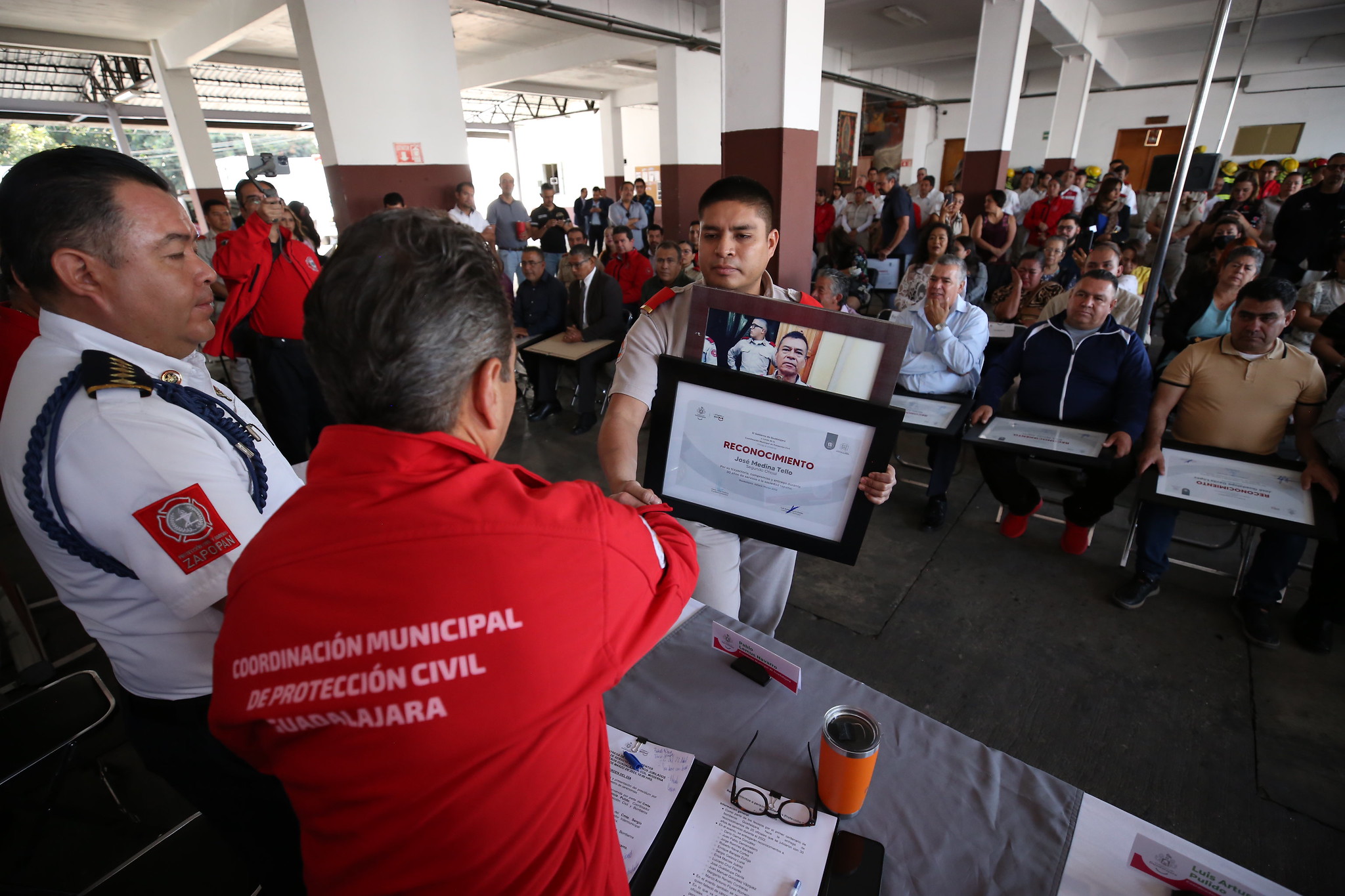 En distinción a su labor y vocación profesional durante 30 años con las y los habitantes de la capital de Jalisco, Pablo Lemus Navarro, Presidente Municipal, encabezó hoy una ceremonia de entrega de reconocimientos a 26 elementos de la Coordinación Municipal de Protección Civil y Bomberos de Guadalajara.
